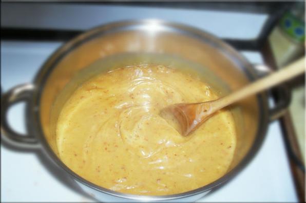 - Gooi in gesmeerde pan, sny in blokkies wanneer koud.